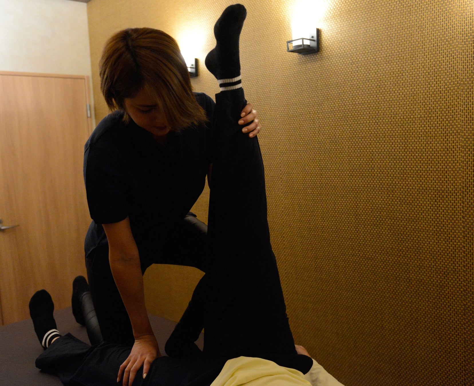 リハビリなどにも用いられる手法のストレッチとマッサージで、短時間でも得られるような効果と効率をあげています。