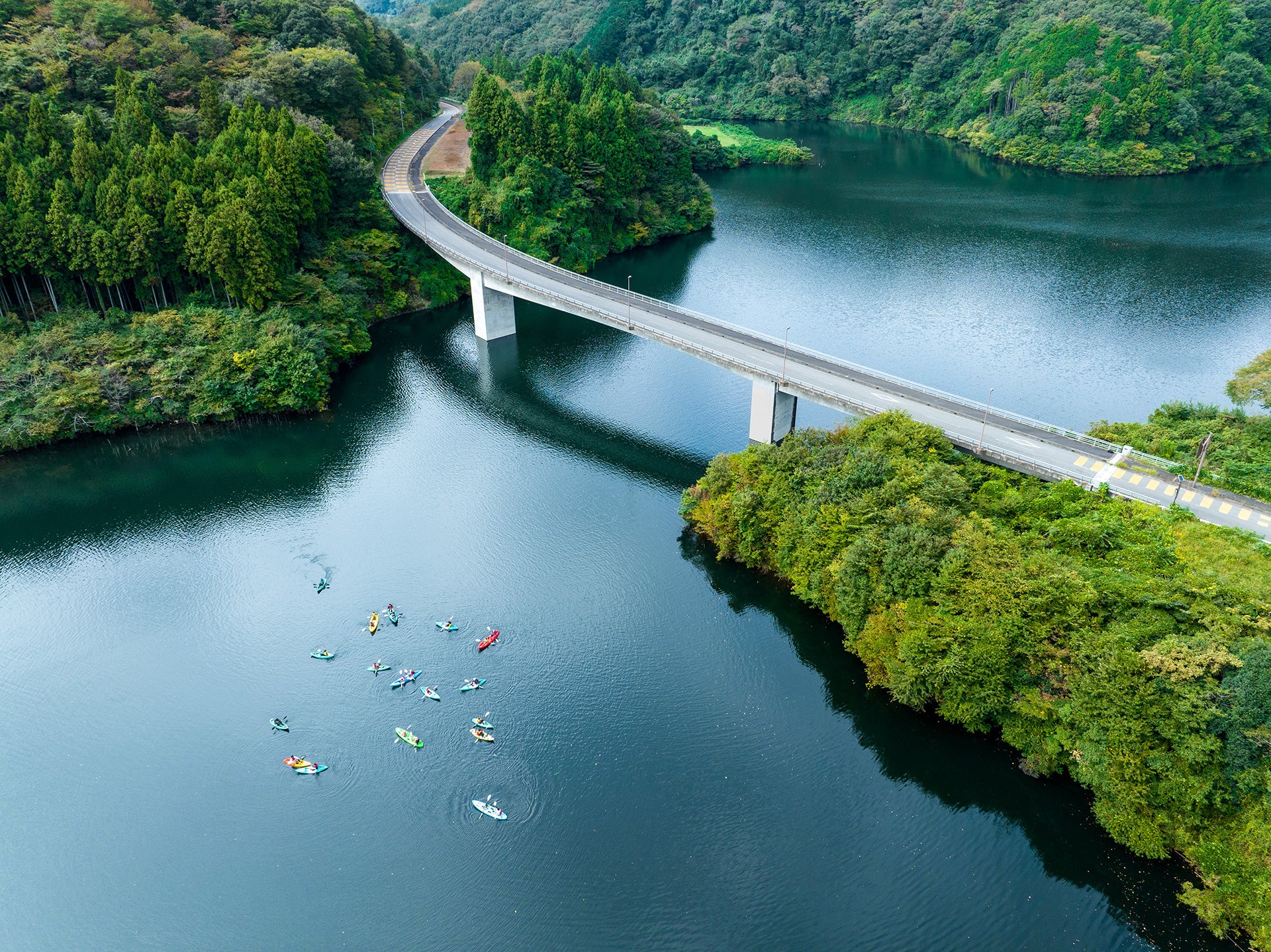 ダム湖面でのカヌーやサップ、ボート体験イベントは、海や河川などと違って波が立ちにくいことなどから、お子様や女性、シニアの方など初心者の方でも安心して楽しめます。