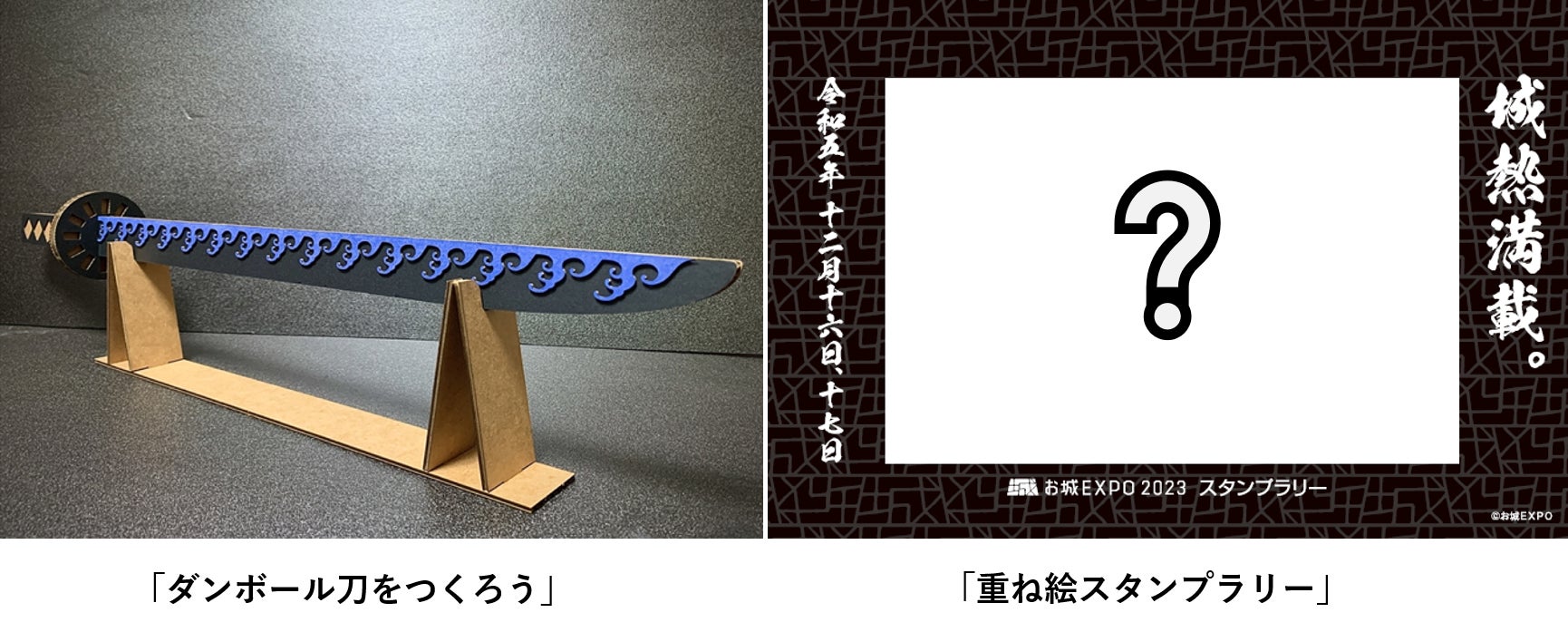 『お城EXPO 2023』は日本各地のお城を有する自治体やお城グッズを販売する企業などによる展示やグッズ販売等が楽しめるほか、イベントステージやワークショップも人気です。イベントステージでは、名古屋おもてなし武将隊®、グレート家康公「葵」武将隊、信長公おもてなし武将隊 響縁、熊本城おもてなし武将隊、古戦場おもてなし武将隊 関ケ原組、小倉城武将隊、安芸ひろしま武将隊など、全国各地で活躍する武将隊が殺陣などのパフォーマンスを披露します。ご当地キャラでは、しろまるひめ(姫路市)、ひこにゃん(彦根市)、くまモン(熊本県)、いなッピー(稲沢市)、のぶながくんとよしもとくん(豊明市)、しまばらん(島原守護神)、うーたん(岐阜長良川の鵜飼)、シロモチくん(津市)、ひごまる(熊本市)などがイベントステージまたは城めぐり観光情報ゾーンの各出展ブースに登場します。