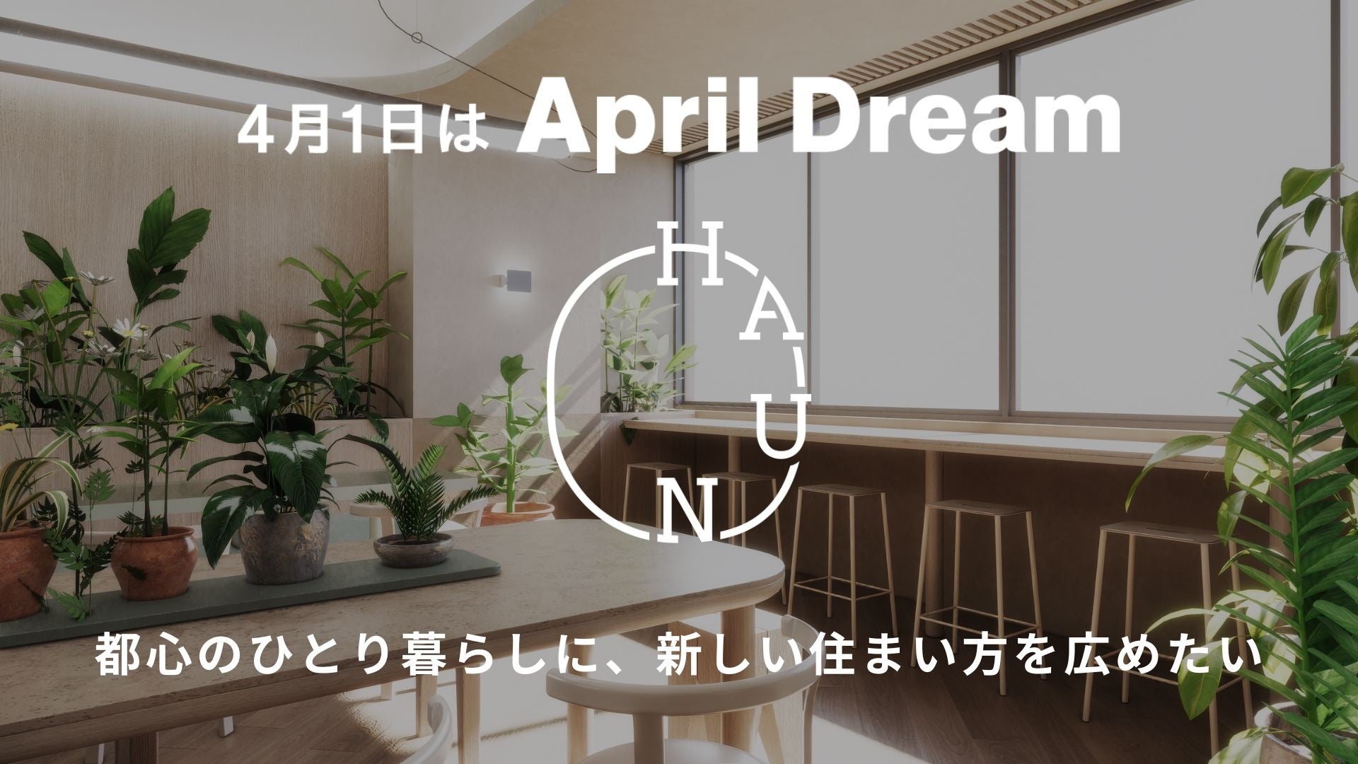 当社は、4月1日を夢を発信する日にしようとするApril Dreamに賛同しています。このプレスリリースは「HAUN株式会社」の夢です。HAUN株式会社(東京都港区六本木6-2-31、代表:吉嶋法生)は、暮らし心地にこだわるコリビング賃貸住宅「HAUN(ハウン)」の第一棟目となる「HAUN TABATA(ハウン田端)」を2024年3月1日(金)に開業いたしました。今後も展開していくHAUNを通して、都心でのひとり暮らしに、「コリビング」という新たな住まい方を提案していきます。