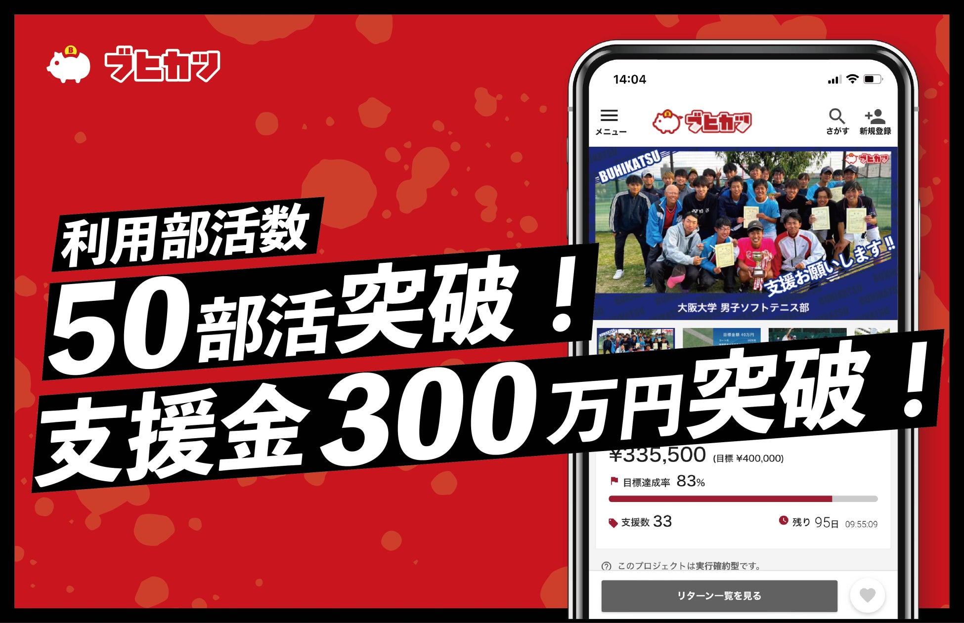 大学部活の資金不足を解決する大学部活支援サイト「ブヒカツ」の支援総額が“300万円”を突破&利用部活数が“50部活”を突破!