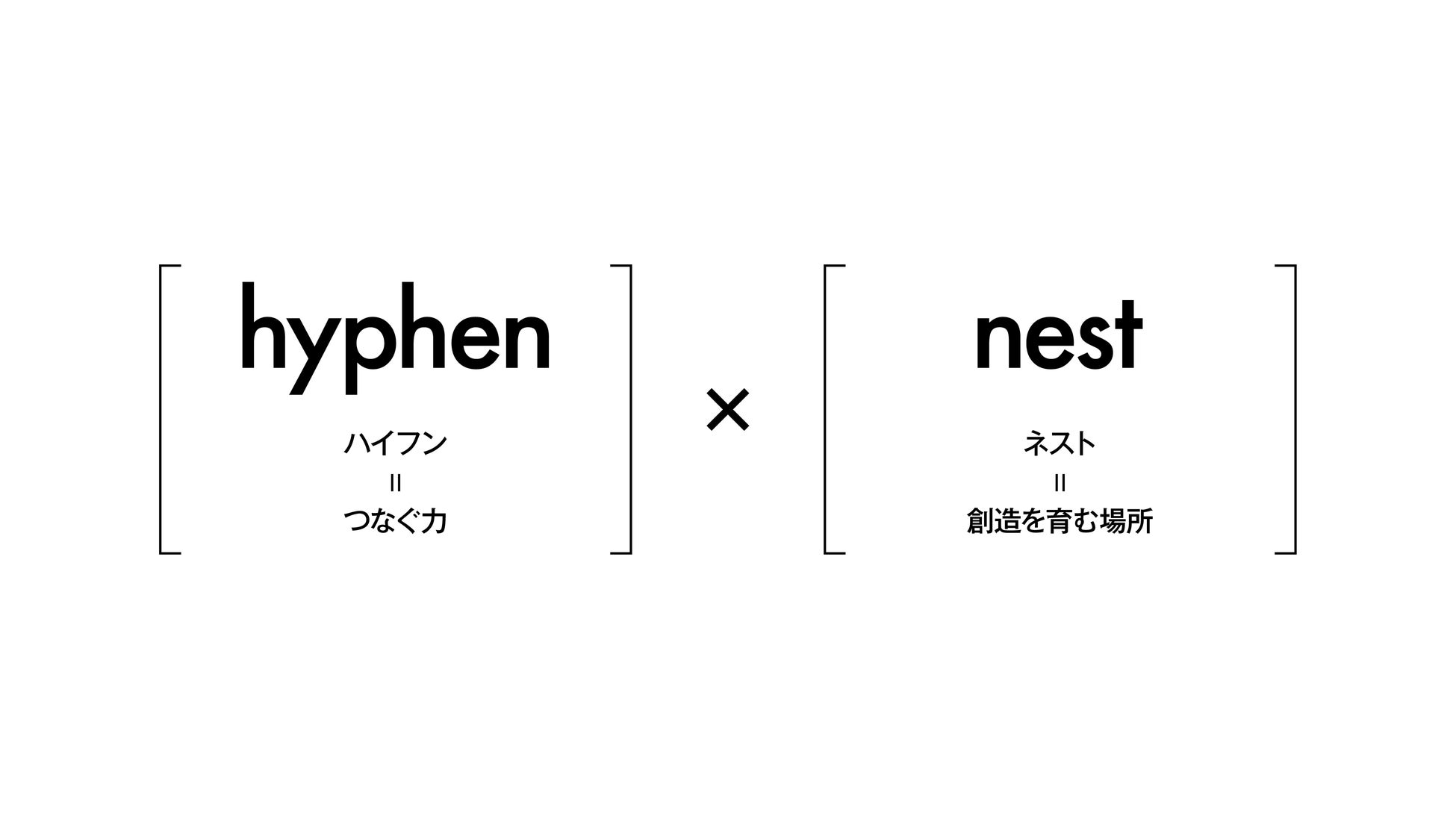hyphenest(ハイフネスト)は、「hyphen(ハイフン)」=つなぐ力 と、「nest(ネスト)」=創造を育む場所 を掛け合わせたクリエイティブカンパニーです。