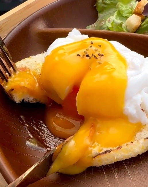 欧米の朝食定番!マフィンの上にベーコン、ポーチドエッグ、オリジナルソースをかけた相性抜群の一品です。すべての食材を厳選して仕入れているので、当店のエッグベネディクトの美味しさは格別です!とろとろたまごを割る瞬間が一番写真映えするので皆様も是非お試しください☆