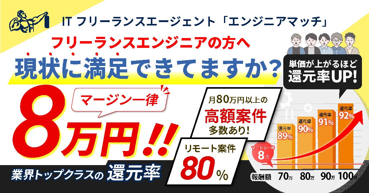 マージン一律8万円のITフリーランスエージェント”エンジニアマッチ”サービス開始のお知らせ