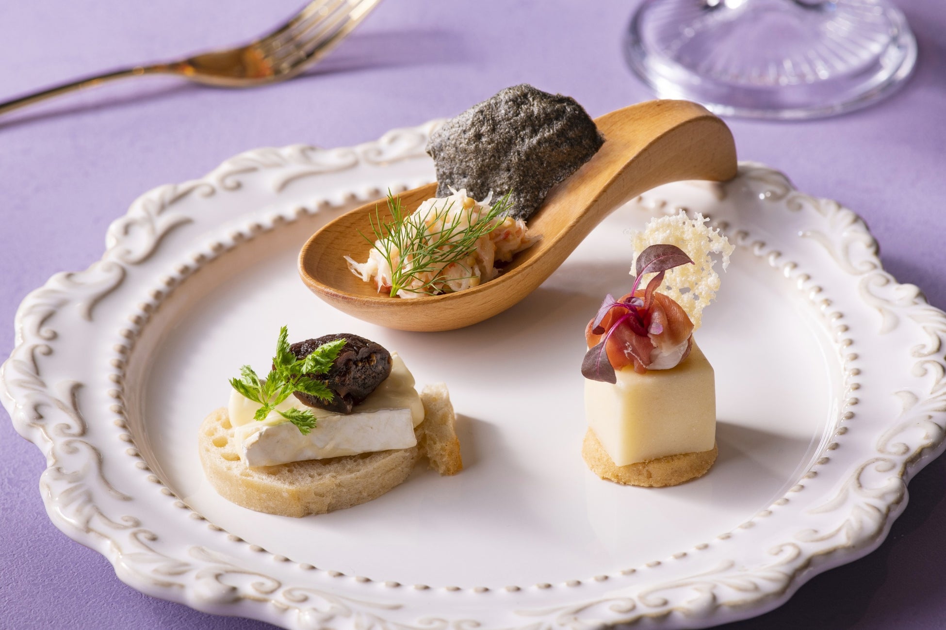 「ブリーチーズとイチジクのミニトースト“クロスティーニ”」(写真左下)