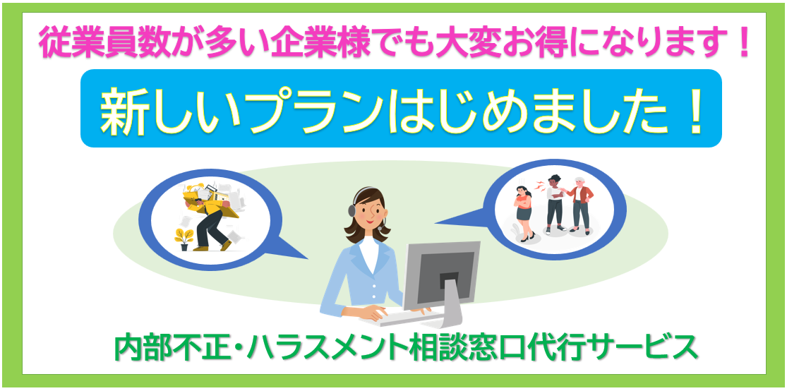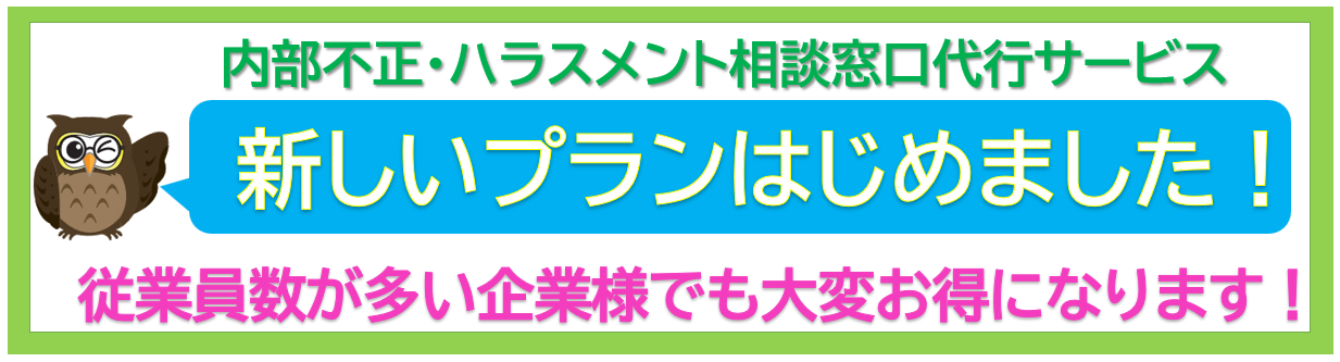 「内部不正・ハラスメント相談窓口」の新プランが登場しましたのでご紹介致します。