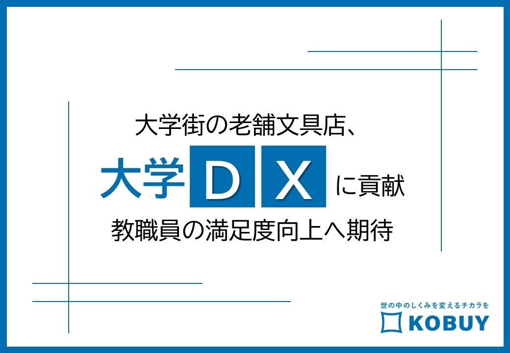 大学街の老舗文具店「木村文具」と「ショップにしもと」は、大学のDX推進の一環として導入されたKOBUYに参画し、従来のアナログな受注をデジタル化へ。教員への納品スピード・顧客満足度が向上しています。