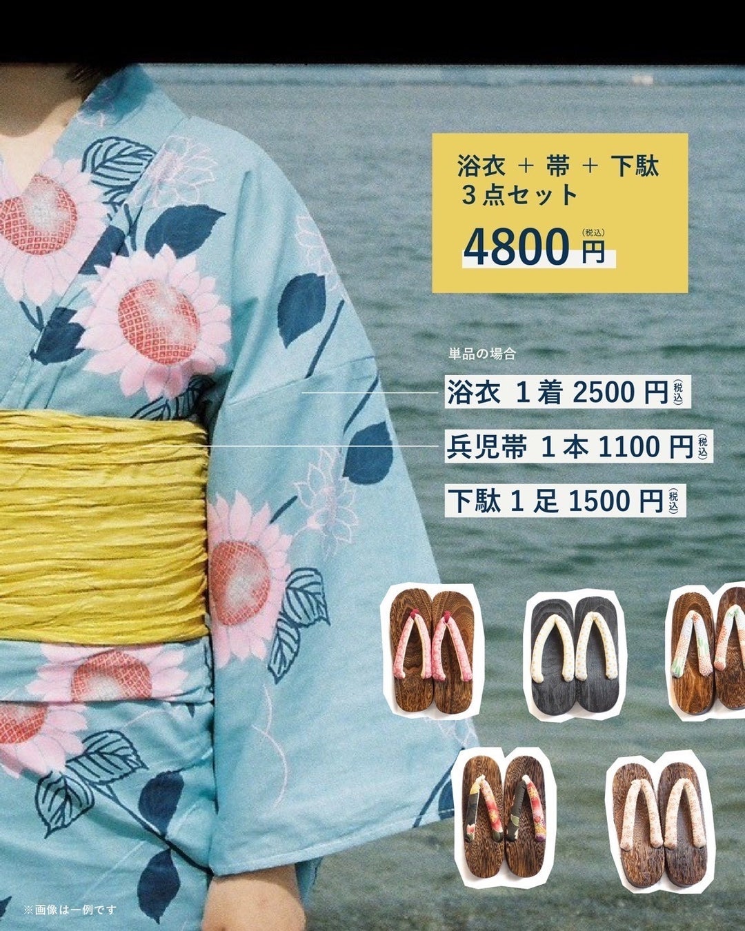 ■浴衣+帯+下駄 3点セット ¥4,800(税込)
