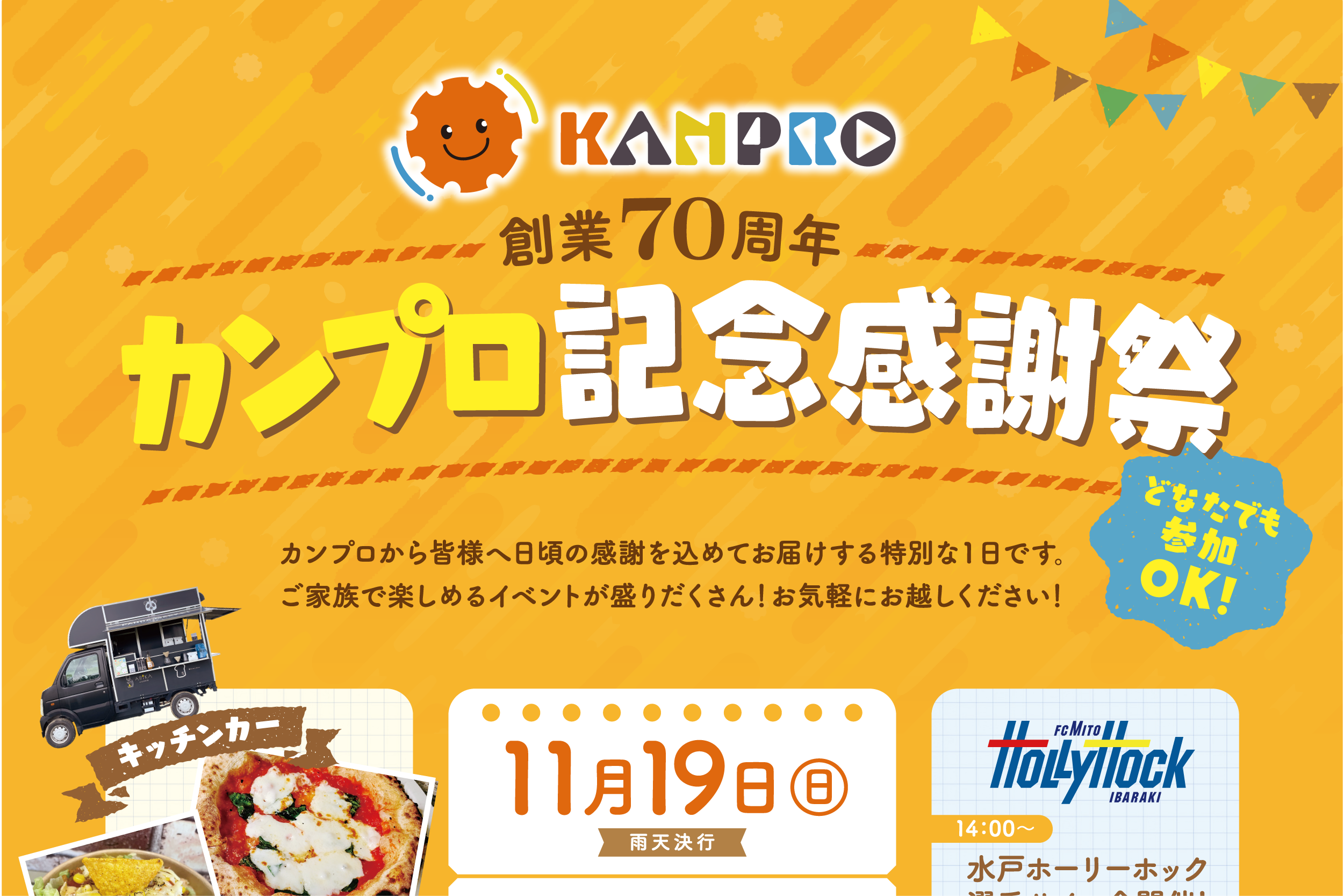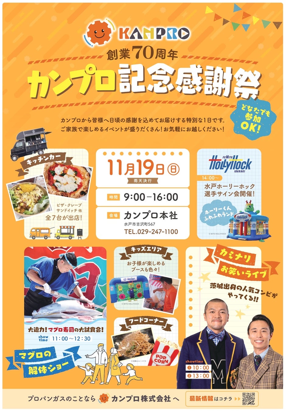 水戸でアツい1日を!カンプロから地域の皆さまへ日頃の感謝を込めて「創業70周年記念感謝祭」を11月19日(日)に開催します