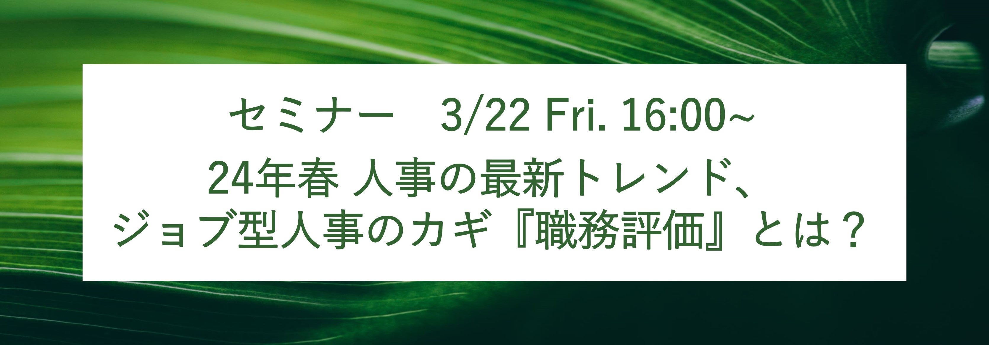 参加受付中|3/22 セミナー|24年春 人事の最新トレンド、ジョブ型人事のカギ 『職務評価』とは?