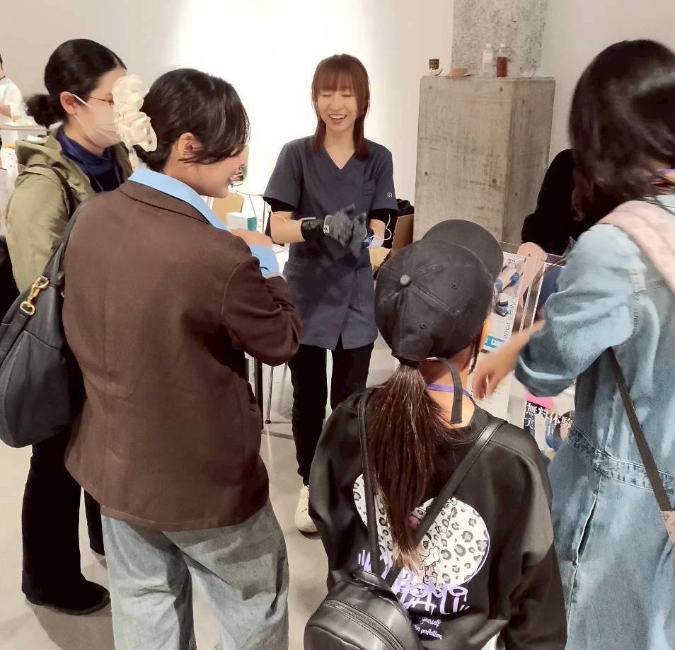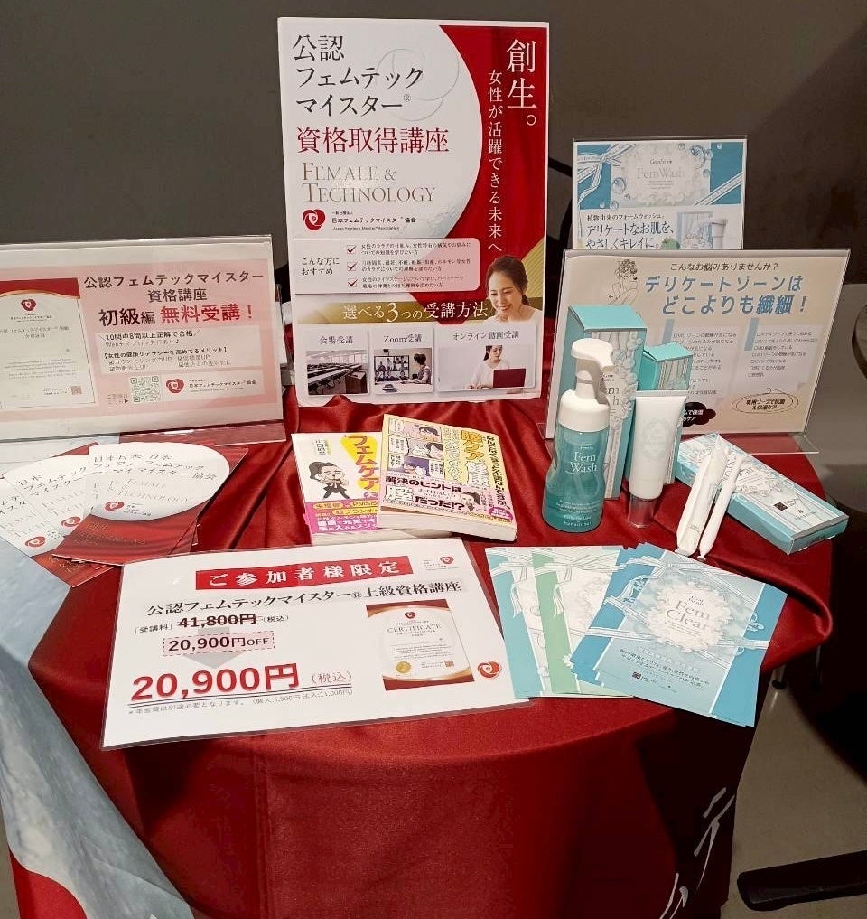 メインスポンサーのリーフラス株式会社をはじめ、計11社にご協賛いただき、各社製品の展示や体験を実施。会場にはフェムテック関連の商品やマシンが並び、お土産にもフェムケアアイテムが勢ぞろいしました。参加者は実際に手に取って成分を確認したり、自身のカラダを計測するマシンを体験したりと、「自分のカラダと向き合う」きっかけとなる新たな発見を得ていました。