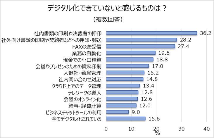 デジタル化できていないものは「社内書類の印刷や決裁者の押印」が1位に