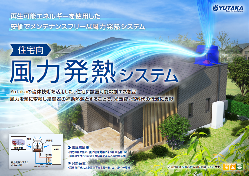 本開発品は、再生可能エネルギーである「風力」を直接熱に変換し、住宅に設置して暖房や給湯に利用することができる創エネ製品です。