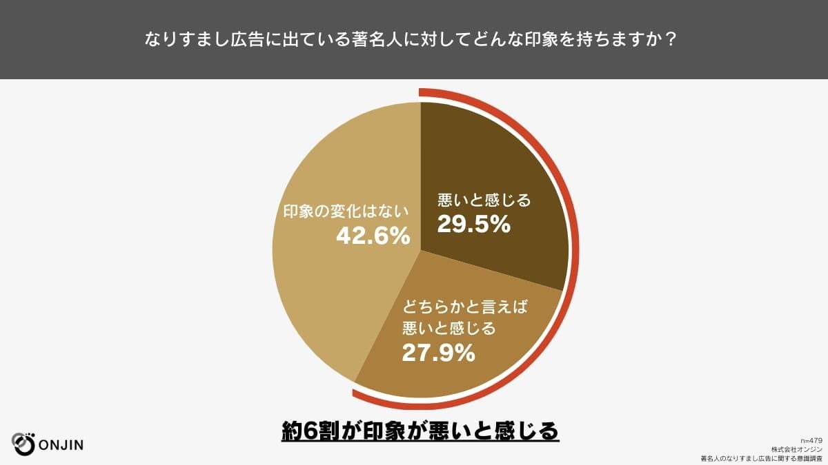 なりすまし広告に出ている著名人に対して印象が悪いと感じる割合は57.4%。