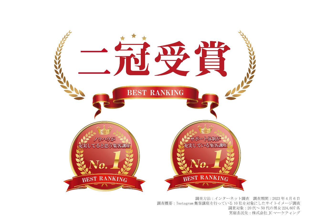 (株)JCマーケティングがNo.1調査を行った結果、株式会社urbanの「Instagram自動集客講座」で2冠を獲得しました!