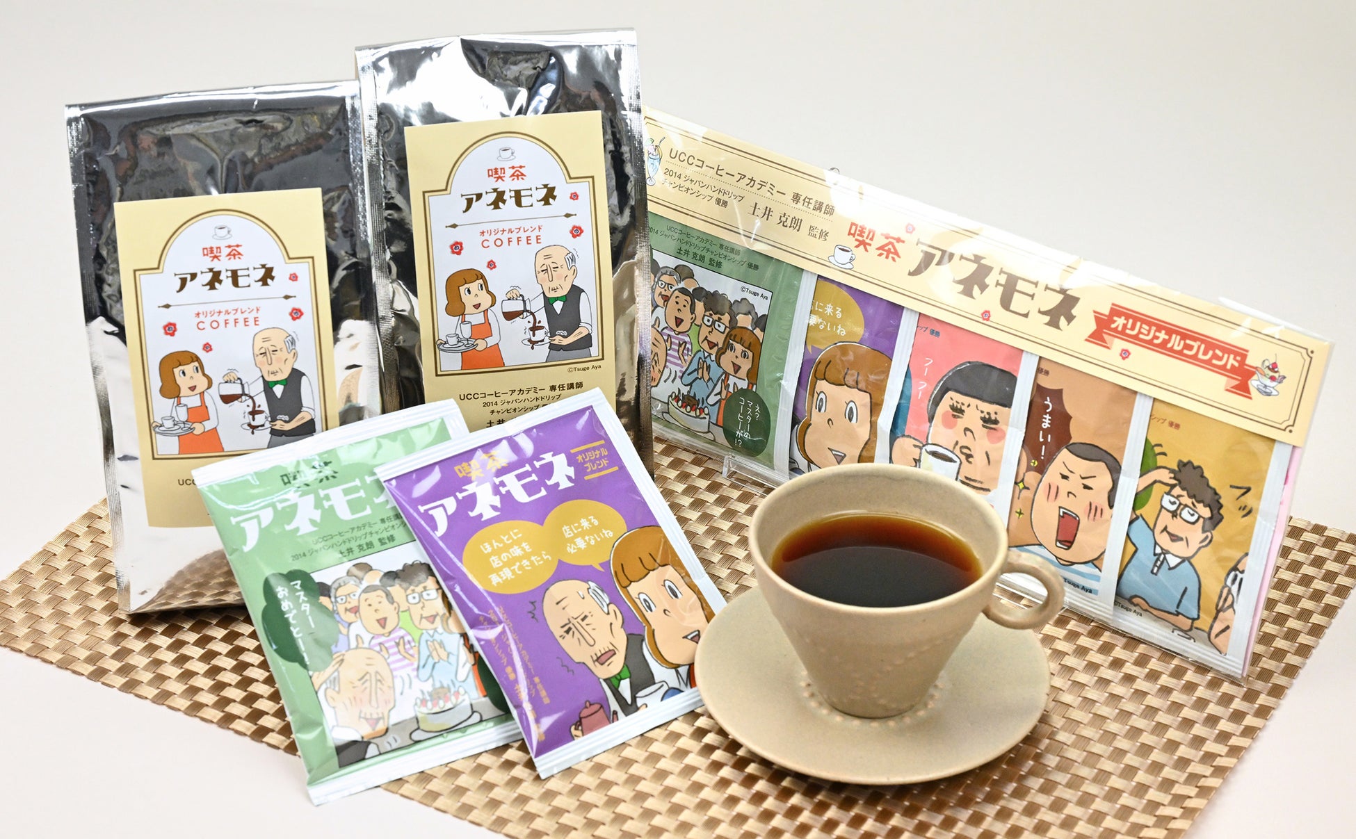 中日新聞・東京新聞で連載中の漫画「喫茶アネモネ」(作:柘植文)。232万人以上の読者に親しまれる当作品とUCCコーヒーアカデミーとのコラボ企画によるオリジナルブレンド。バリスタ・土井克朗氏(※)の監修のもと、よっちゃんやマスターがいる風景やどこか懐かしい喫茶店が思い浮かぶような、スペシャルな味を体験いただけます。