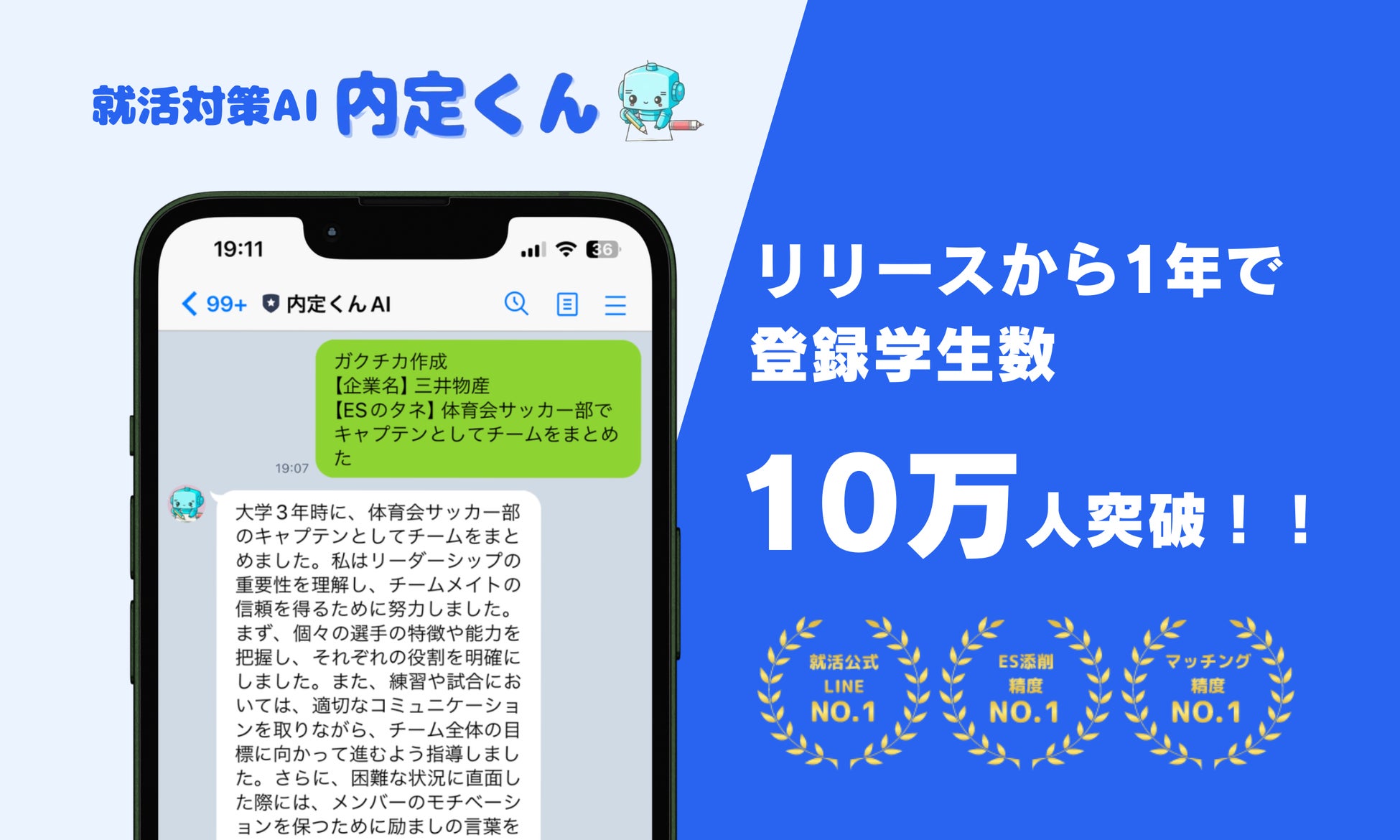 【生成AI×LINEでES作成/ES添削〜内定くんAI〜】サービスリリースから1年で登録学生数10万人を突破!!