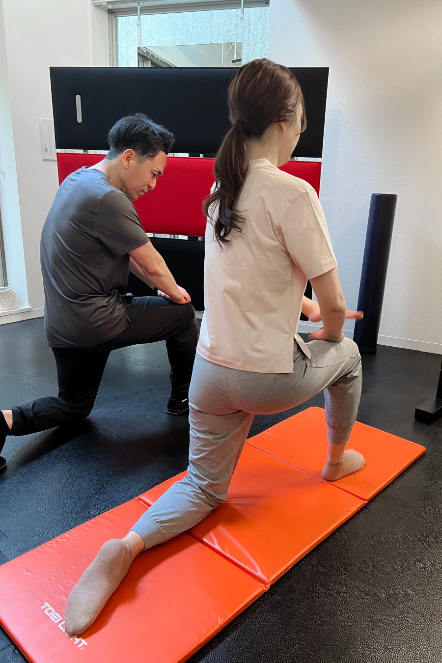 トレーニングの前に一人ひとりに合わせたパーソナルストレッチを実施