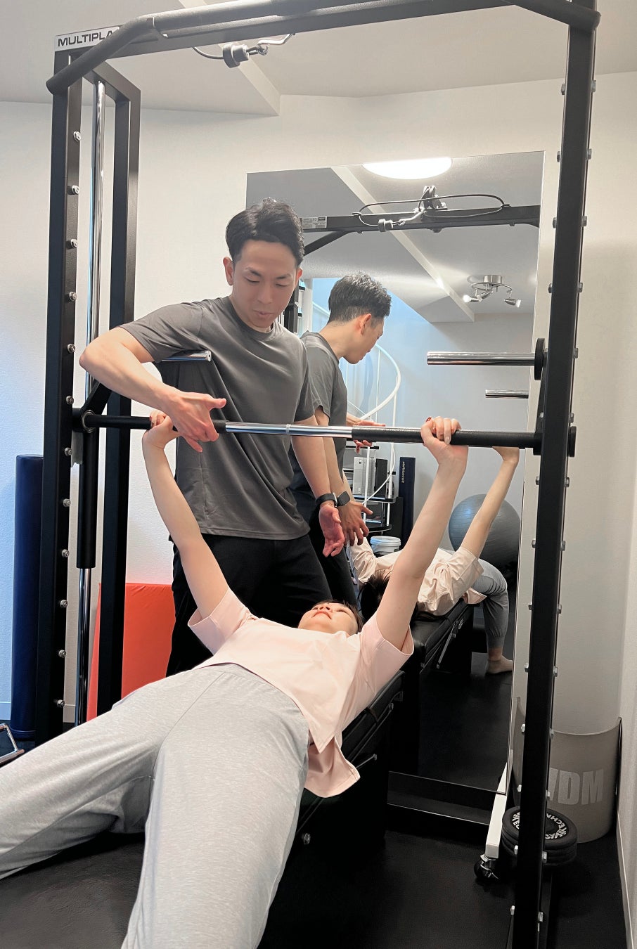 パーソナルトレーナーが支え安全且つ効果的なトレーニング一人ひとりカスタマイズして実施