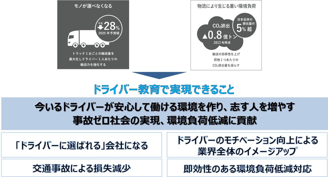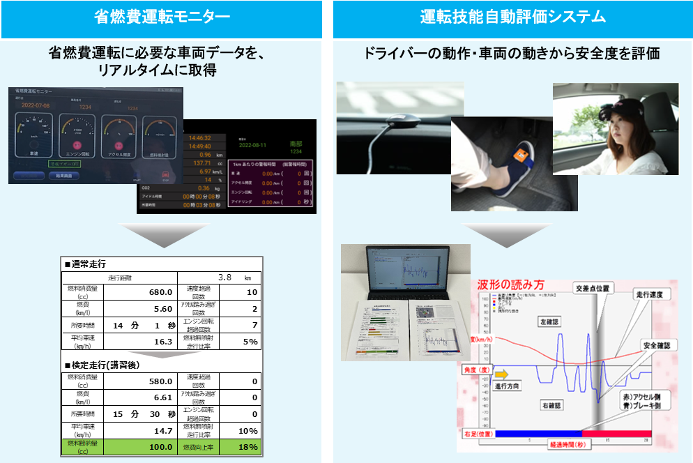 ドライバーの運転動作・操作を数値化し、個別指導を実施。プロのドライバーを育成し、困りごと解決に貢献します!