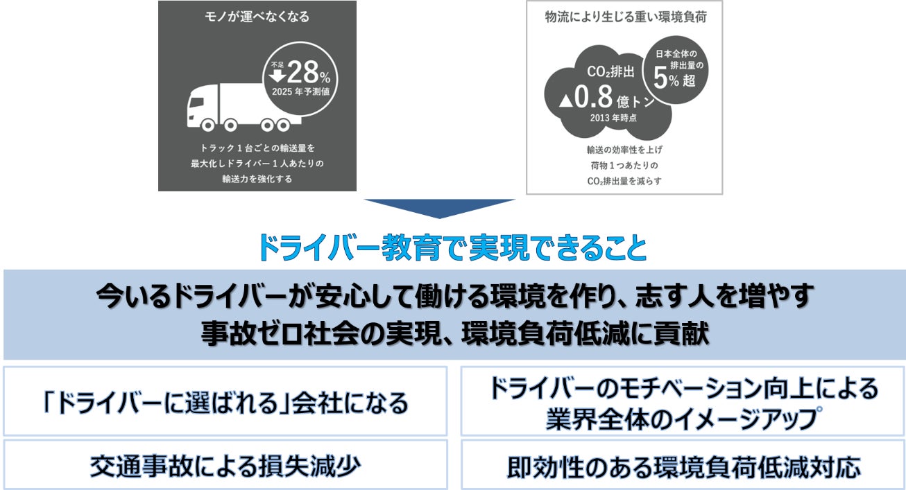 近年、ドライバー不足と共にその育成、定着は物流業界の大きな課題となっております。ネクドラは、客観的にトラックドライバーの能力を評価し、その能力向上を支援することにより、トラックドライバー並びに物流業界の価値向上を目指します。