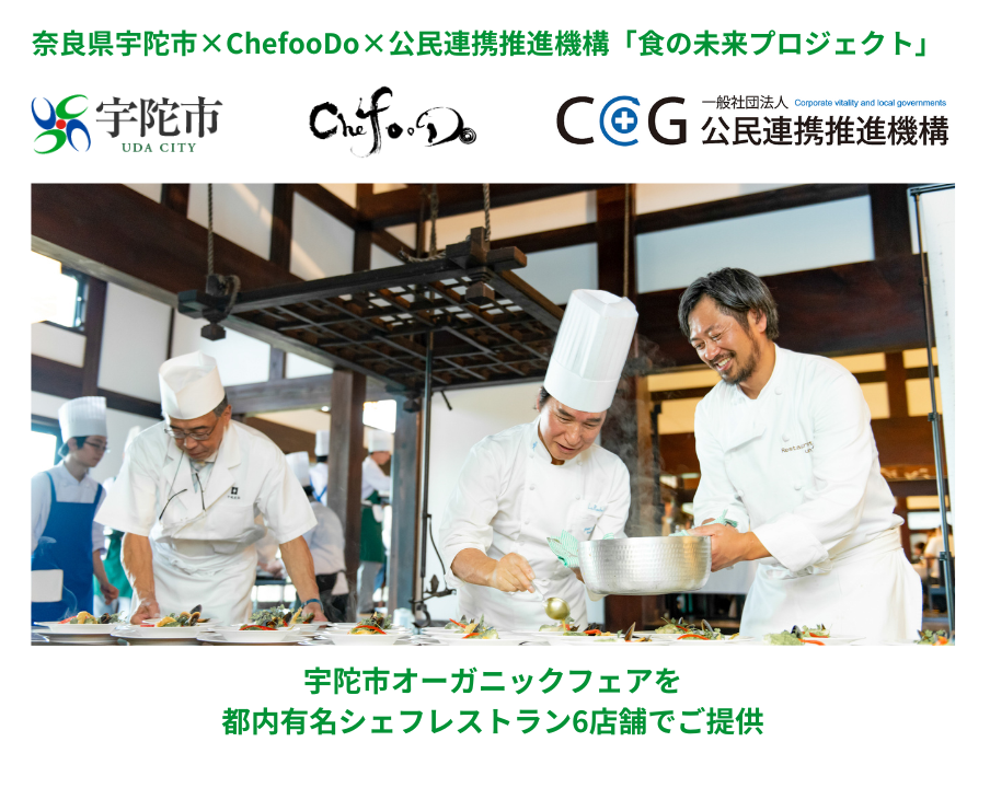 C+Gでは、自治体会員である「奈良県宇陀市」への支援施策として、宇陀市の「知名度向上・観光活性化・農業生産者の活性化・ふるさと納税増収」を目的に、「宇陀市オーガニックフェア」をC+Gの法人会員である有名シェフや観光事業者と連携しスタートいたします。