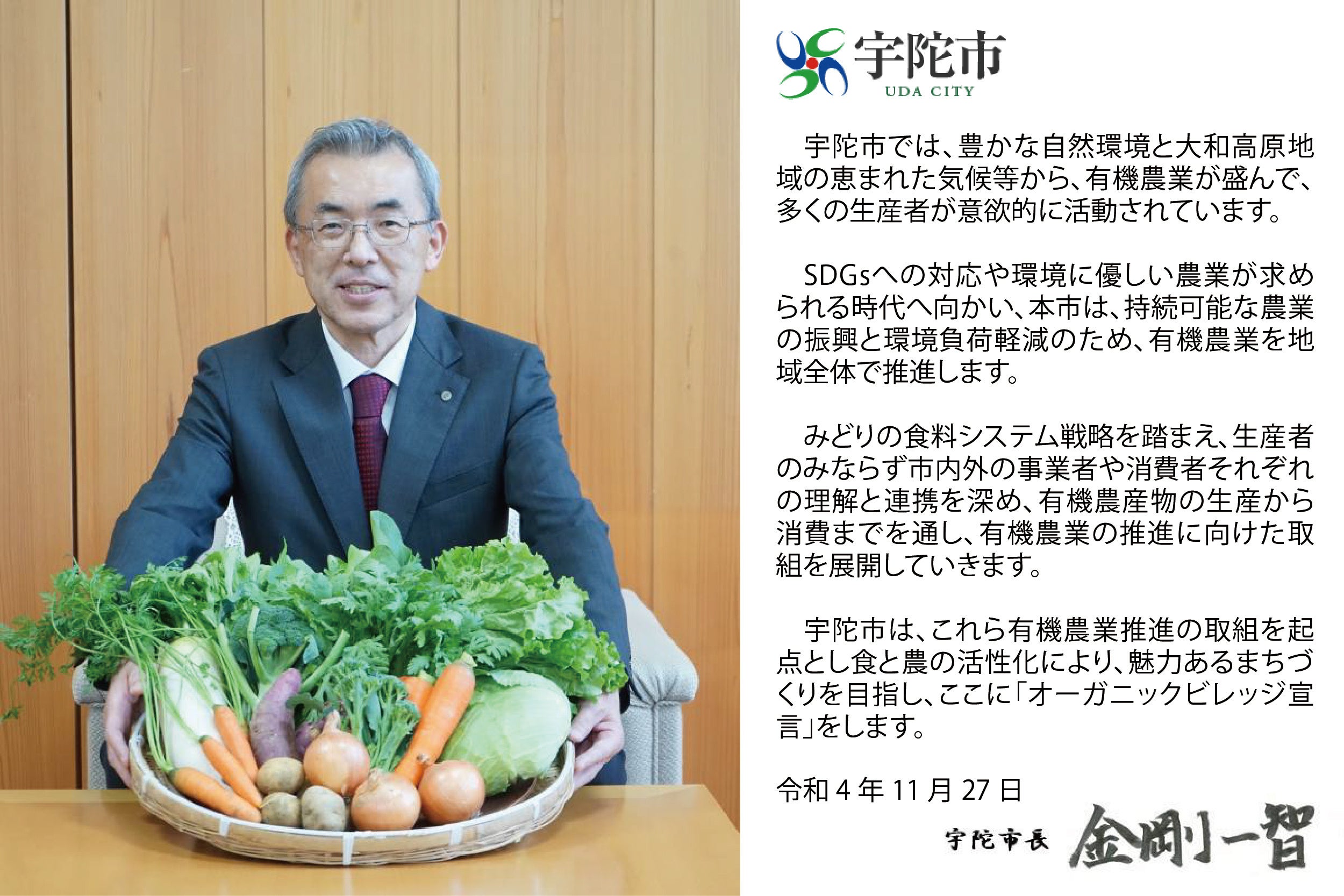 宇陀市は、薬草発祥の地をはじめ、奈良県のブランド牛「大和牛」の中でも最高級A5ランク黒毛和牛「大和榛原牛」でも広く知られていますが、古くから有機農業が盛んで、多くの生産者が意欲的に活動しています。SDGs への対応や環境に優しい農業が求められる時代へ向かい、持続可能な農業の振興と環境負荷軽減のため、有機農業を地域全体で推進しています。
