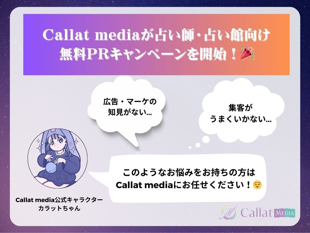 Callat mediaでは、占い市場全体の活性化に貢献する取り組みを行いたいと考え、独占インタビュー記事の無料作成によって占い師・占い館のPR支援を行うキャンペーンを開始いたしました。