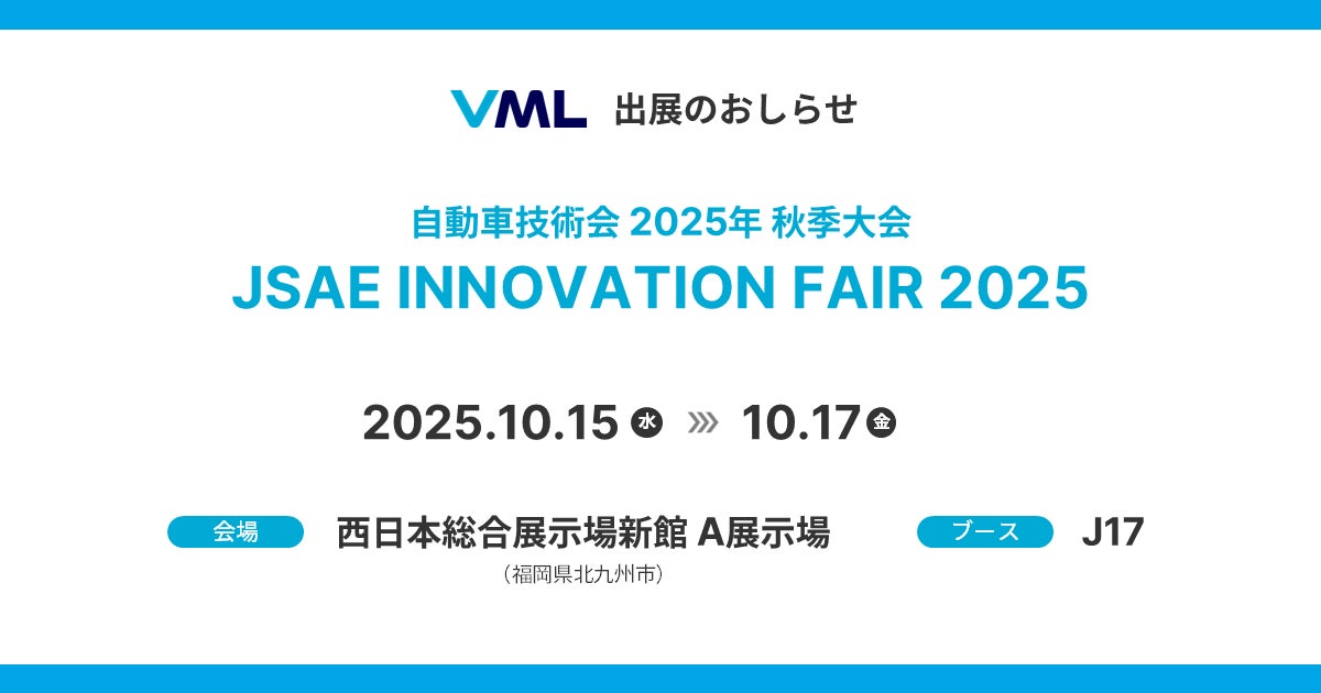 自動運転・制御系エンジニア育成事業を展開するVirtual Motorsport Lab Inc.(本社:大阪府大阪市北区、代表取締役 山下洋樹、以下 VML)は、2025年10月15日(水)〜17日(金)の期間中、自動車技術会 2025年秋季大会の展示会「JSAE INNOVATION FAIR 2025」に出展することをお知らせします。