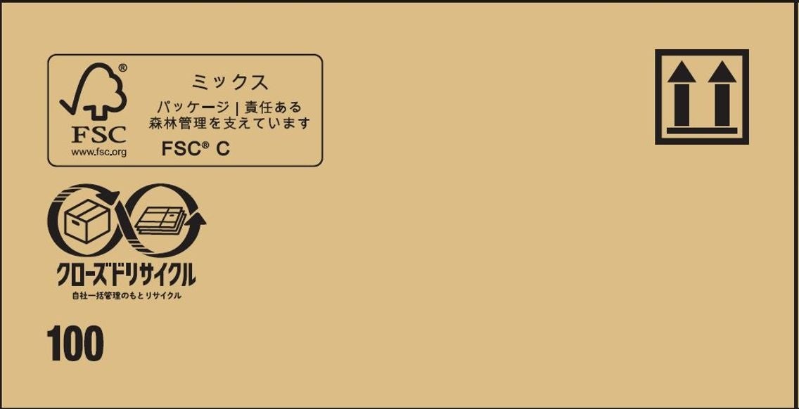 クローズドリサイクルによって製造される段ボールケースはFSC認証※2を取得しています。段ボールケースにはFSC認証マークを印字するほか、当社独自のクローズドリサイクルのマークを印字し、循環型社会の実現に向けた取り組みを推進する企業であることを訴求します。
