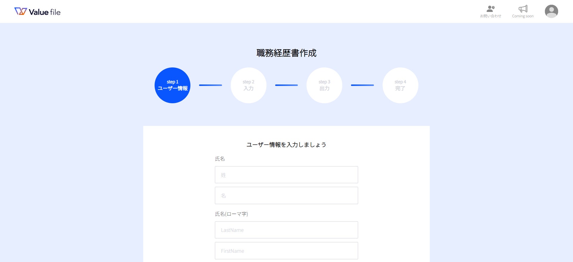 4月中旬より試験的に運用を開始した、レジュメマネジメントツール「Value file」が登録者100名を突破し、β版をリリースしました。試験運用を経てAIドラフト作成機能の正式リリースのほか、Googleシングルサインオンの追加、使い方チュートリアルの実装、アウトプットのデザイン変更等、より使いやすい仕様に進化しました。今後も継続的なアップデートを実施し、ユーザーがより簡単かつ効果的に職務経歴書を作成・管理できるようサポートします。