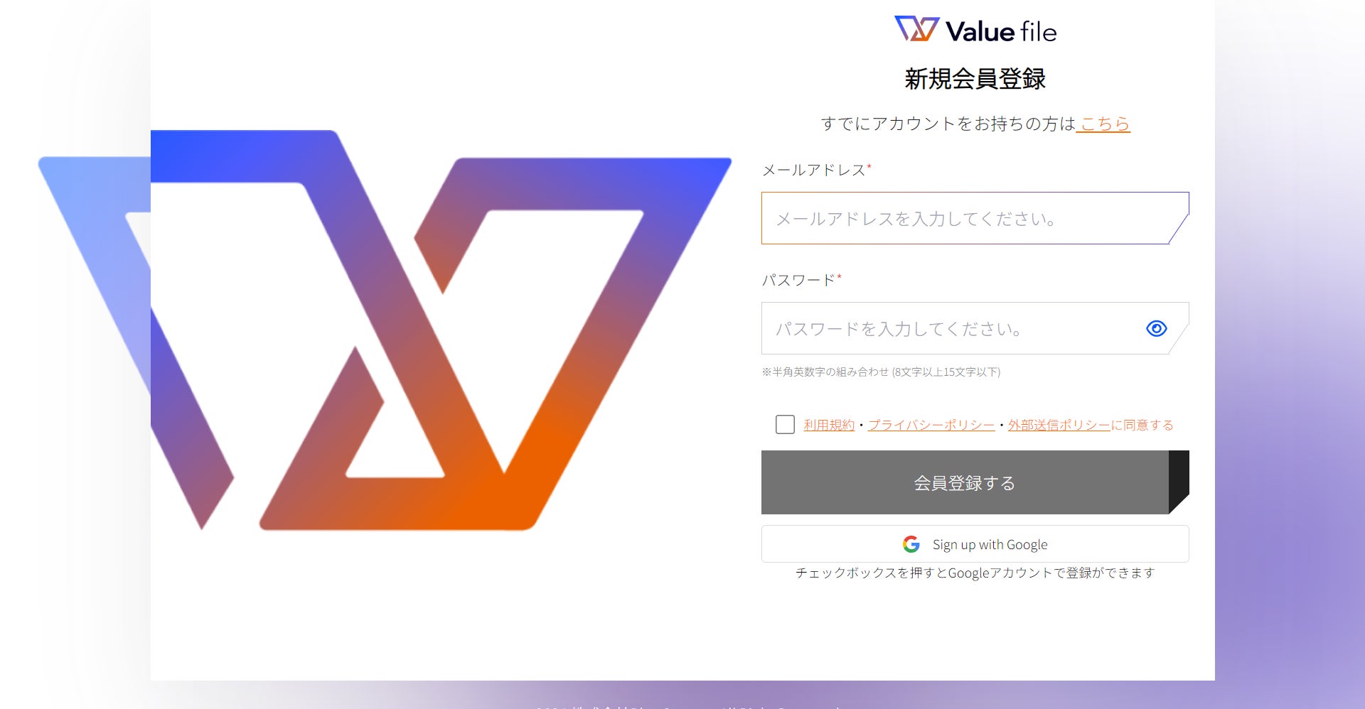 新規登録やログインの際の手間を省くため、Googleシングルサインオン機能を追加しました。これにより、ユーザーはGoogleアカウントを使用して簡単にValue fileにアクセスできるようになります。