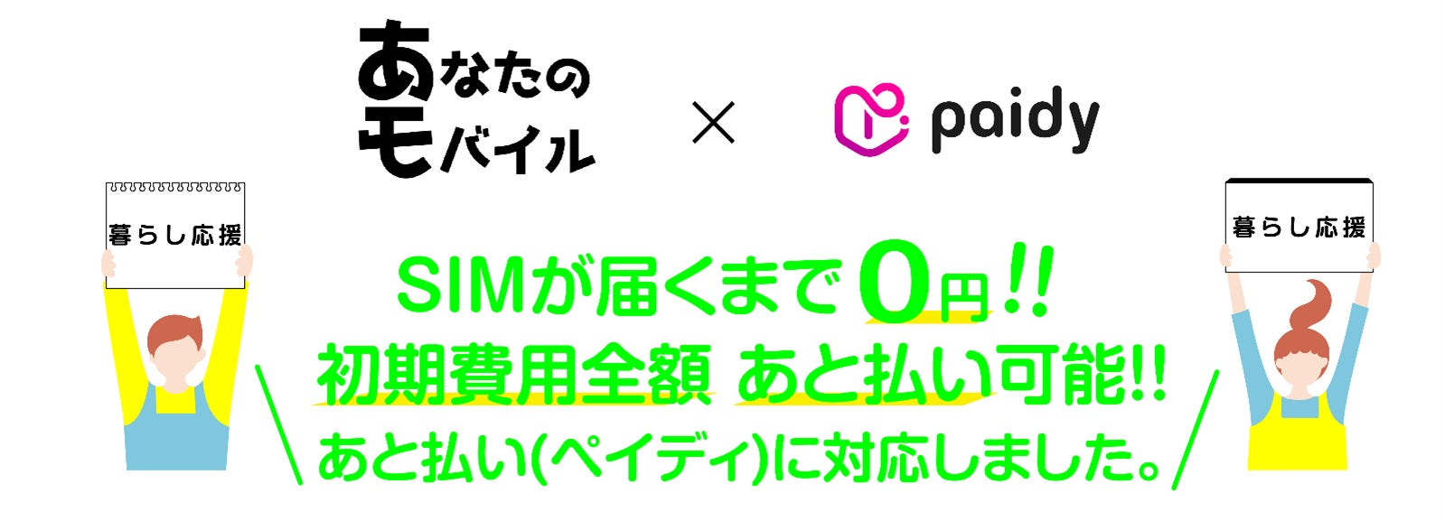 「SIMが届くまで0円」初期費用決済あと払い(ペイディ)に本日8月2日より対応の審査なしで契約可能な携帯会社あなたのモバイル