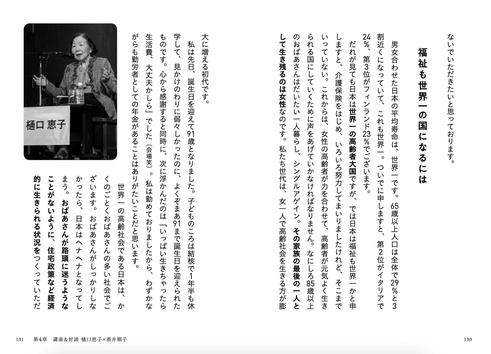 「老いはとっても個性的」をテーマに対談した酒井順子さんと著者