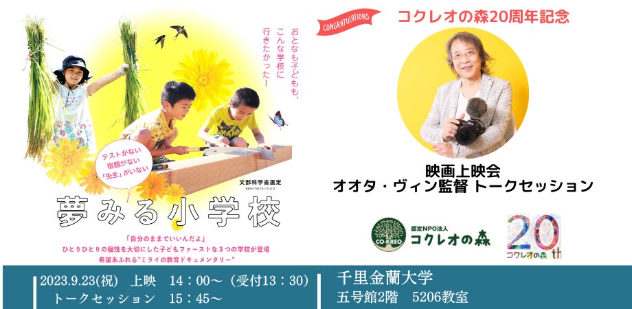 コクレオの森20周年を記念して、「夢みる小学校」の上映とオオタ・ヴィン監督のトークセッションを行います!!
