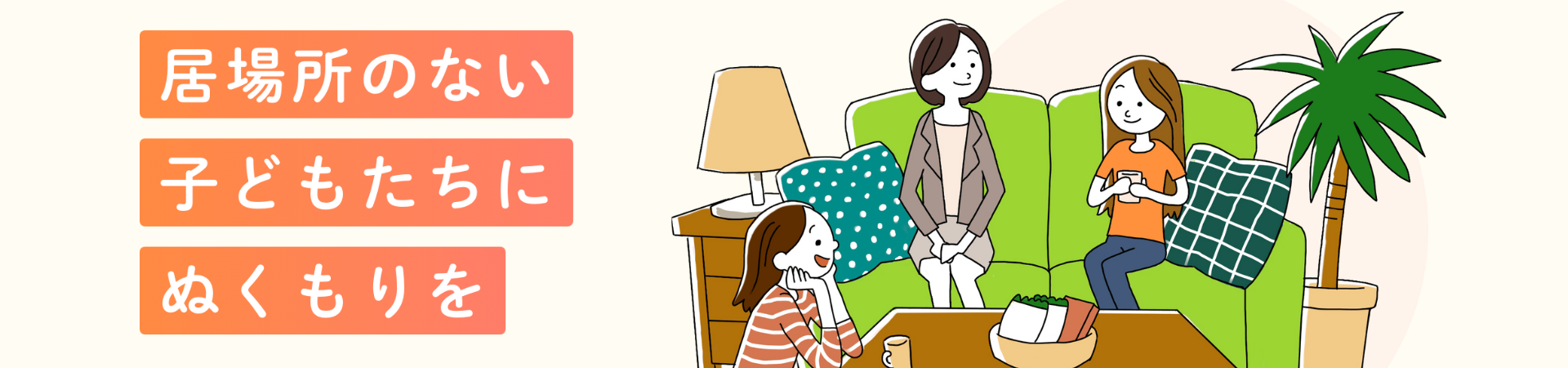 子どもセンターぬっくは、虐待や貧困、非行等により家に居場所をなくし、心身ともに傷ついているのに、制度のはざまに落ち込み、支援が届きにくくなっている10代後半くらいの子どもたちを支援する団体です。そんな子どもたちに、安心して心身を癒せる生活の場を提供し、自分らしく生きる権利を保障するため、2015年9月に子どもセンターぬっくを設立しました。