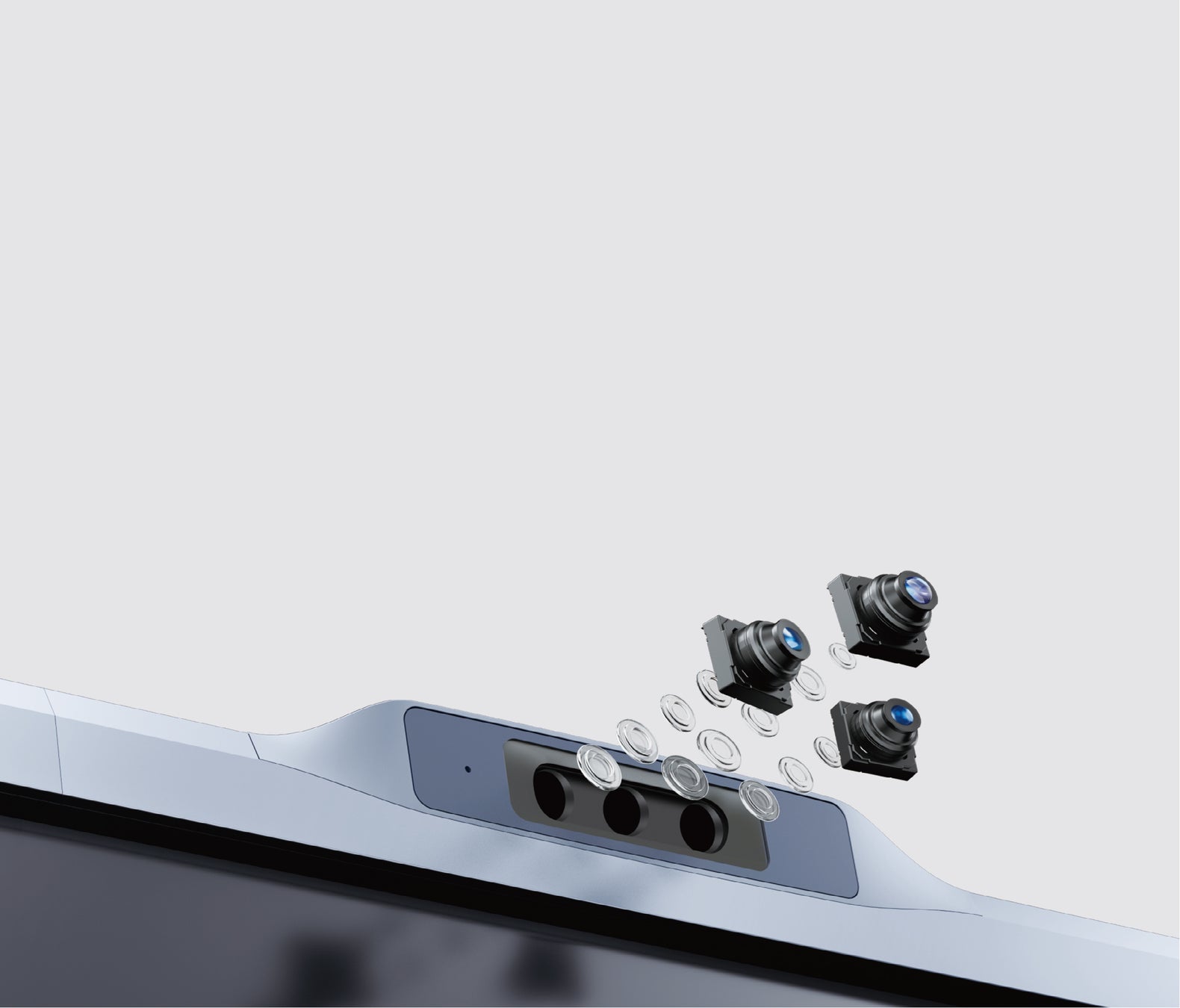 3 台の高解像50メガピクセル カメラを装備したMAXHUB XBoard V7は、AIを活用し、参加者の表情やニュアンスを捉え、自然で集中したコミュニケーションを促進します。