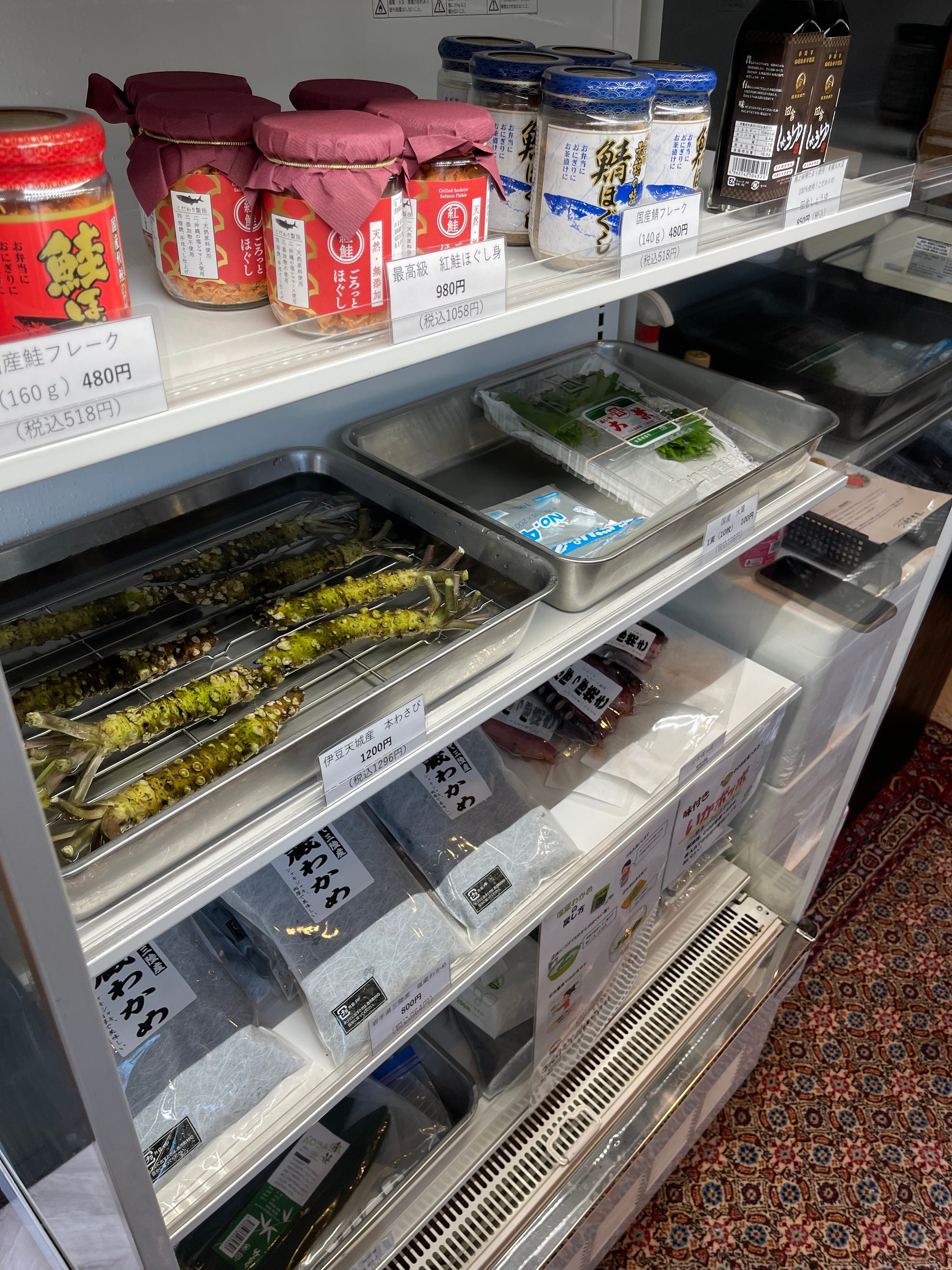 より本格的に楽しんで頂くために、伊豆天城産の丸ごと本わさび、岩手県三陸産の塩蔵わかめ、お飾りの笹の葉も販売しております。
