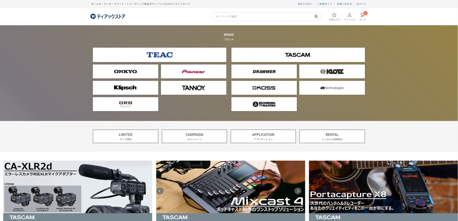 多くのブランドを扱うティアックストアでは、ブランドごとのサイトを持つことが条件となりました。