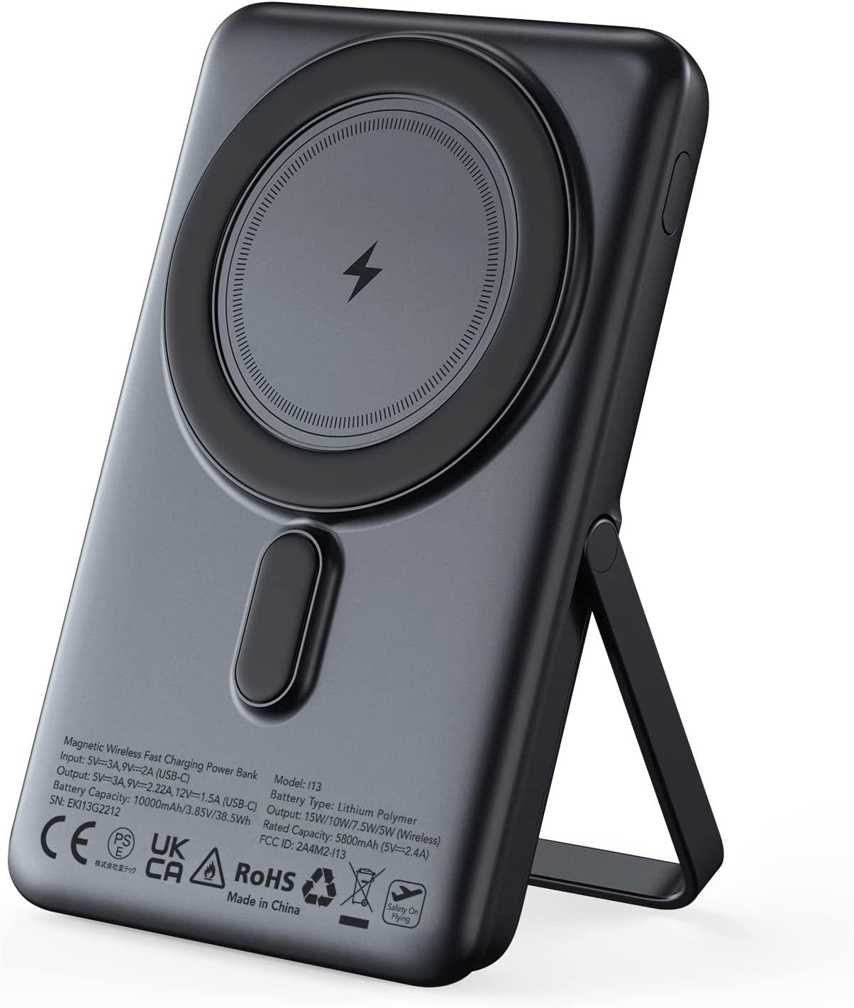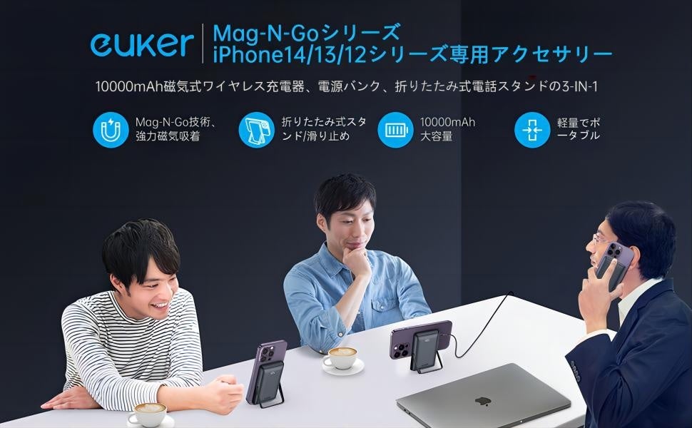 革新的な充電体験:Euker Magsafeモバイルバッテリー - 10000mAh大容量、軽量でポータブルなデザイン、マグネット式ワイヤレス急速充電、スタンド機能付きで究極の利便性を提供