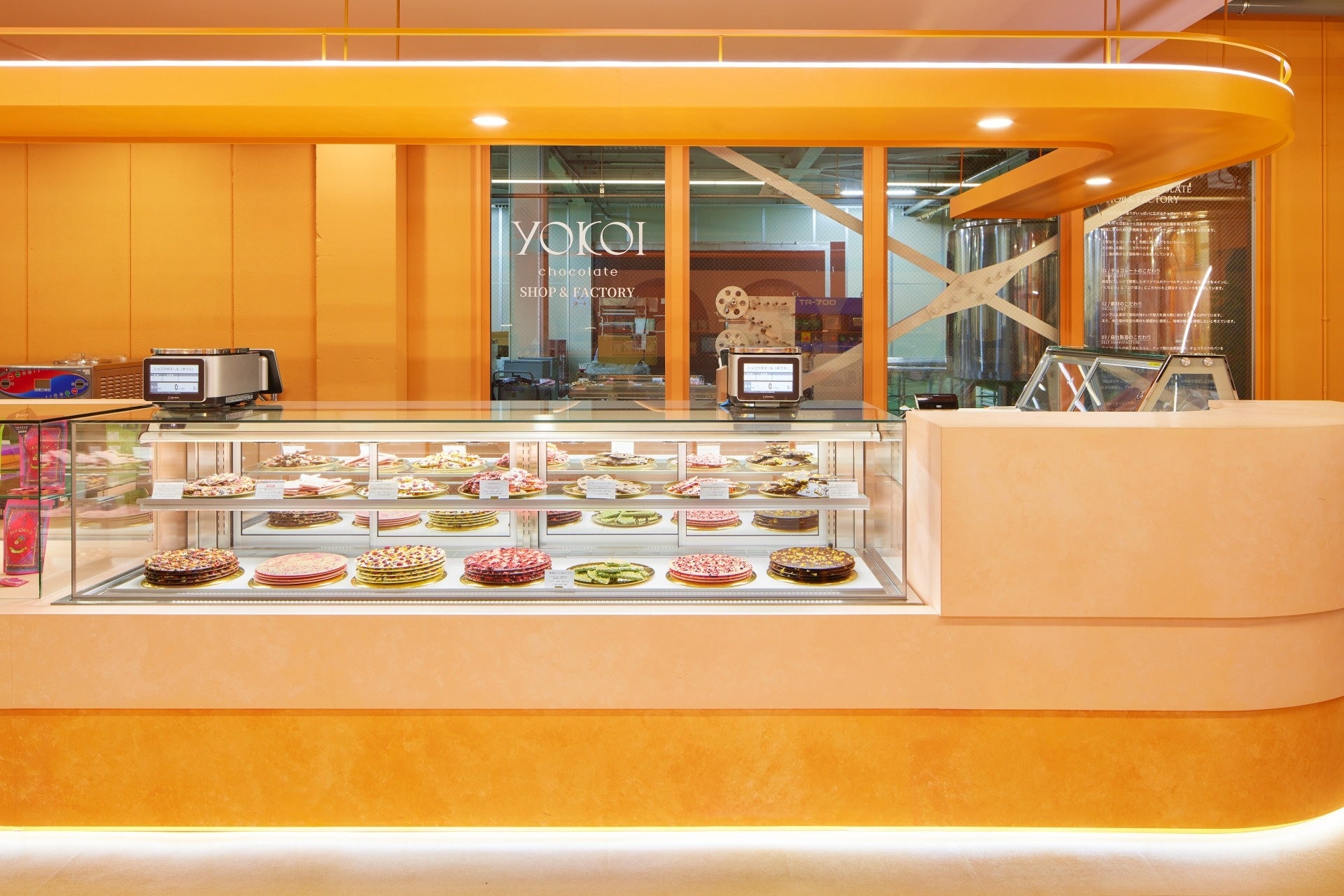 2016年設立以来初の単独店舗として2024年2月3日オープンした「横井チョコレート ショップ&ファクトリー」では、直営店ならではのチョコレート量り売り等の商品を並べたショーケースも設置。