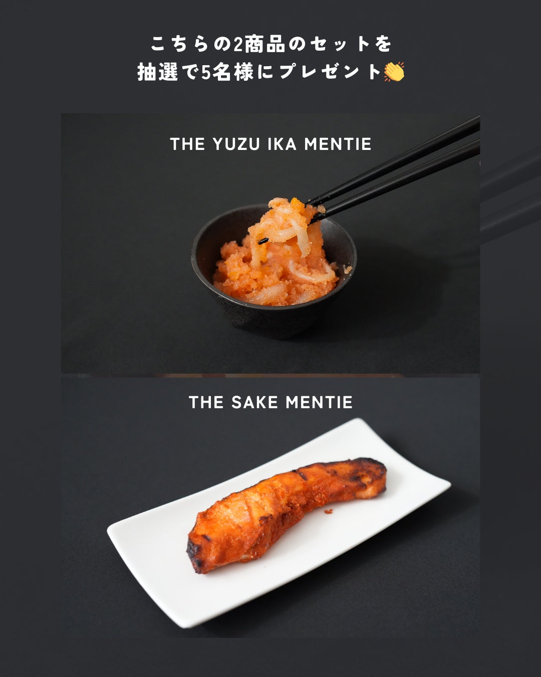 MENTIE公式Instagramアカウントをフォローと対象投稿へのいいねで「THE YUZU IKA MENTIE」と「THE SAKE MENTIE」のセットを抽選で5名様にプレゼントします。