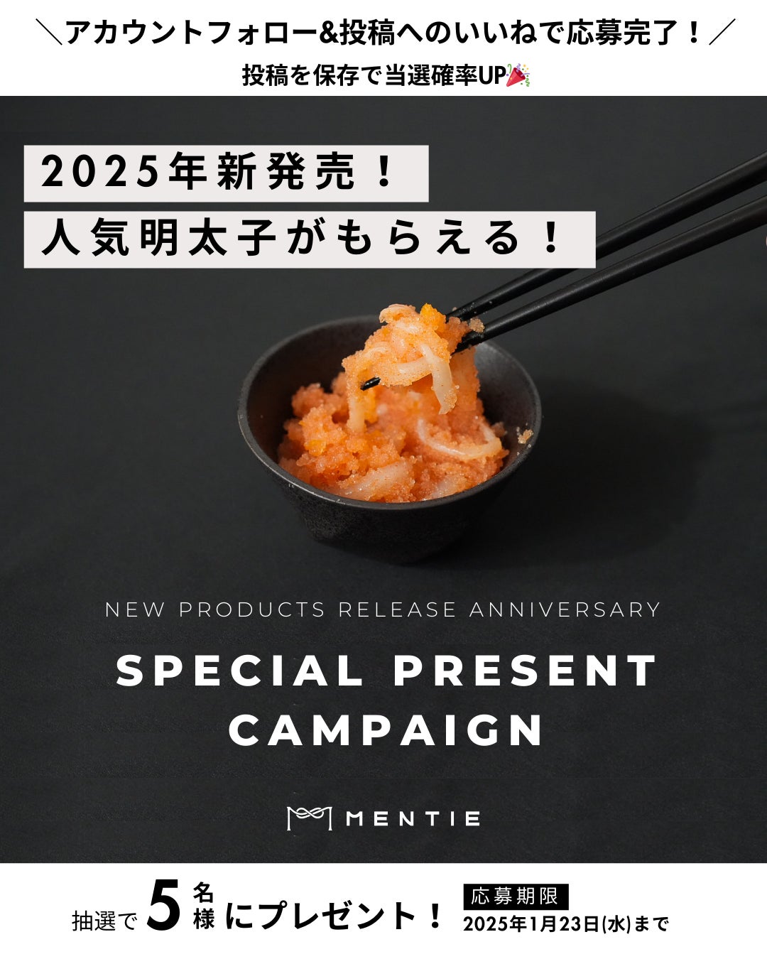 1月10日(金)明太子の日と新商品発売を記念して、公式Instagramアカウントにてフォロー&いいねキャンペーンを開催します。