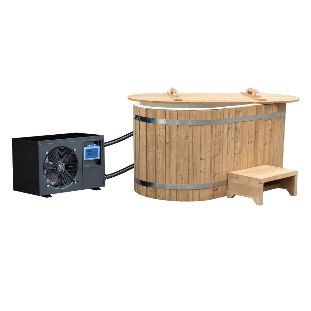 大人1人がゆったり浸かれる深さ70cmのちょうど良いサイズの浴槽に、水を1時間で4~5度冷却できるチラーシステムがセットになった商品。