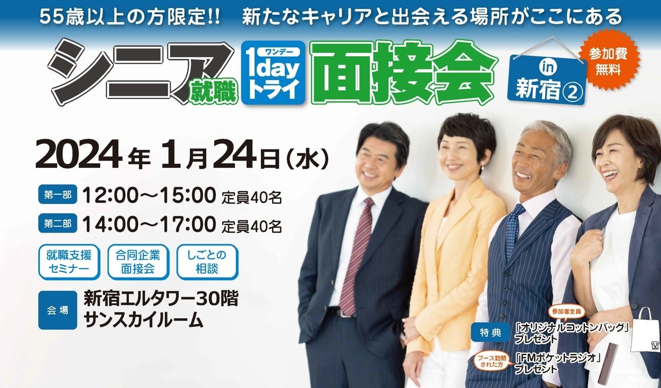 企業とシニア世代のマッチングを推進、就職を目指すシニア世代のためのイベント第4弾「シニア就職1dayトライ面接会in新宿2」 を1月24日(水)に開催