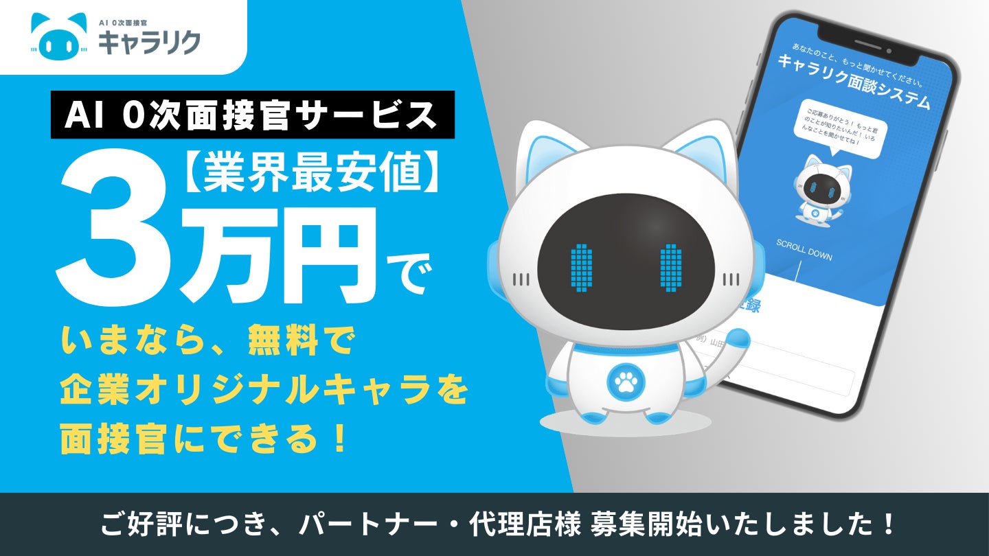 キャラリクを特別価格30,000円で提供開始 -企業のオリジナルキャラクターをAI面接官にできるオプションが今なら無料(2024年2月28日まで)