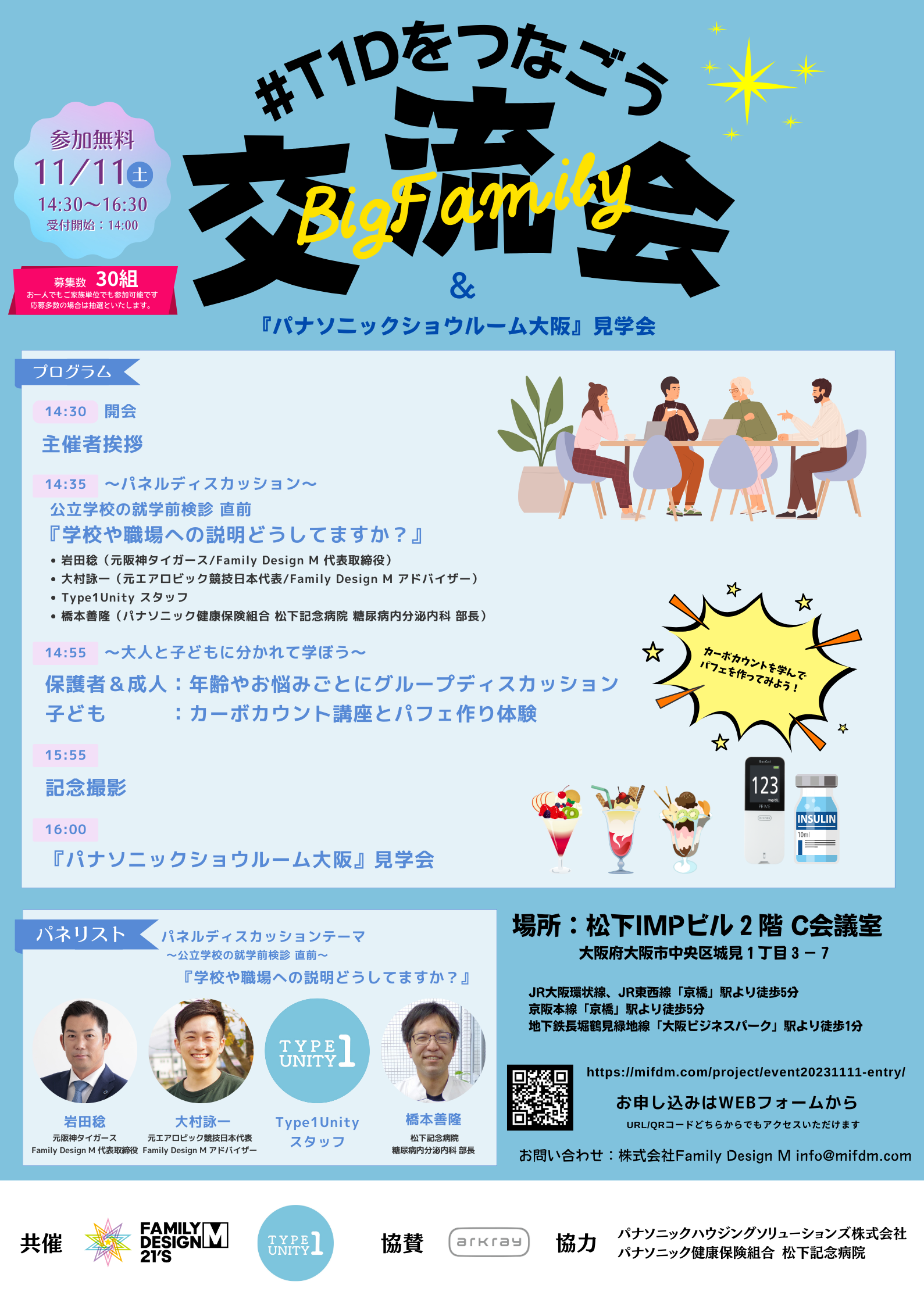 【11月11日、12日 開催】世界糖尿病デーに向けたFamily Design M主催の1型糖尿病啓発イベントの開催が決定!!