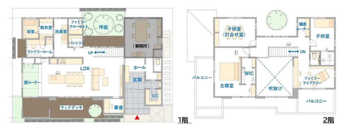 (2階)吹抜けに面したファミリーライブラリーで、家中の空気が穏やかに繋がる