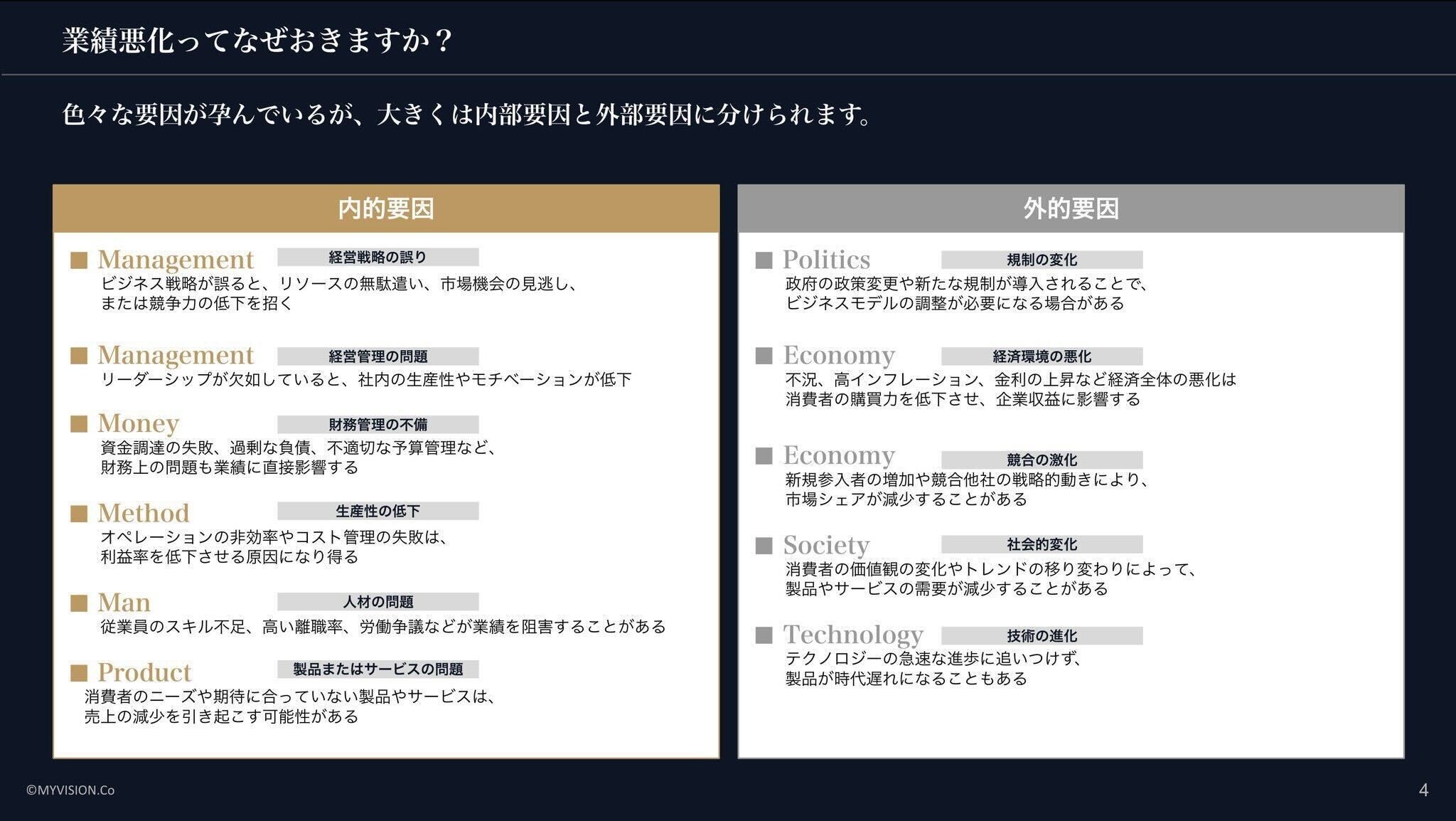本資料では、業績低迷時のブランディングとしての経営理念/ミッションビジョンバリューの重要性、理念の見直しと再定義のプロセス、および組織全体での理念の浸透と実践の方法について詳しく解説します。