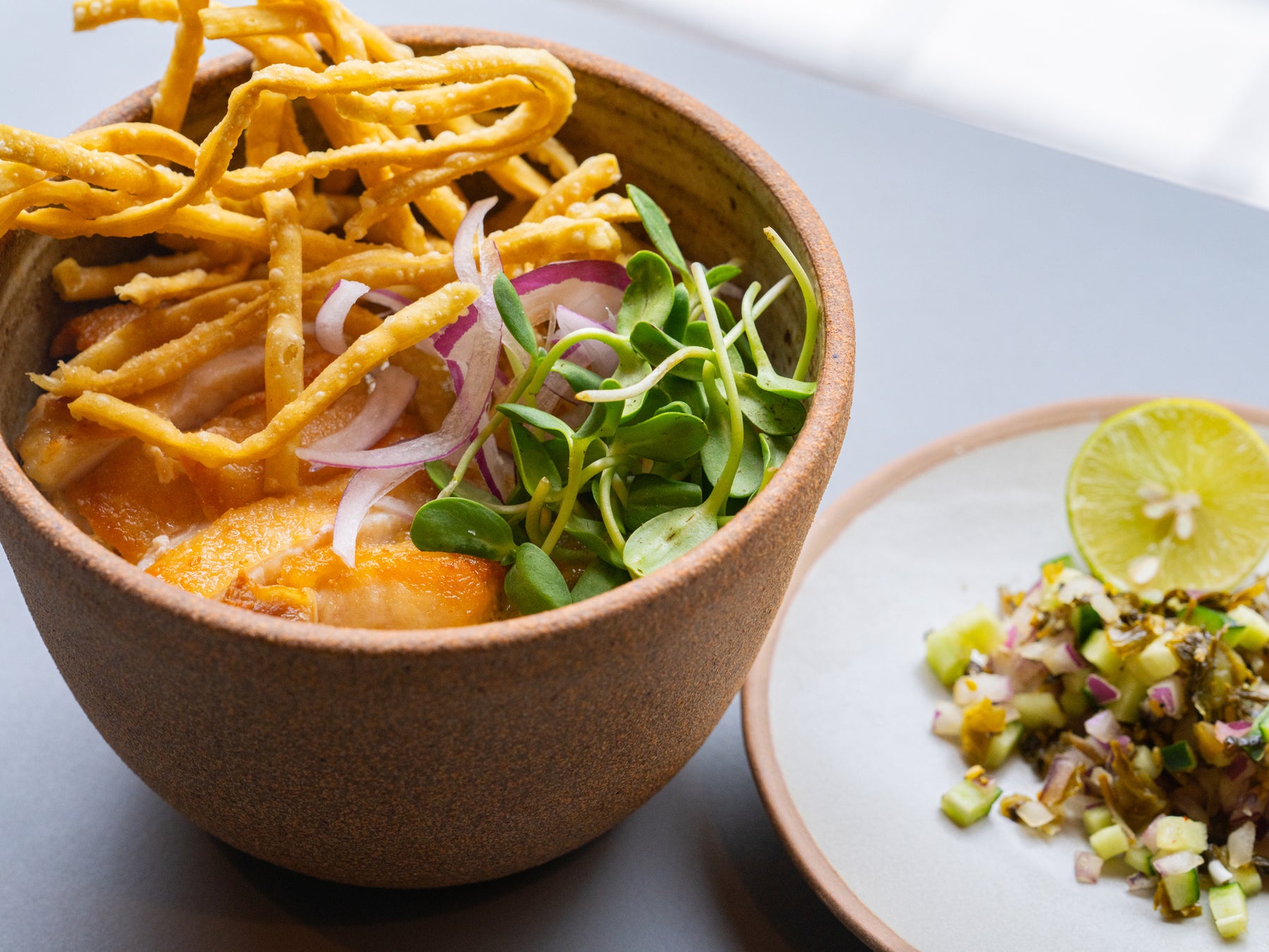岡山「冨士麺ず工房」のカオソーイ専用に作られた生麺を使用。